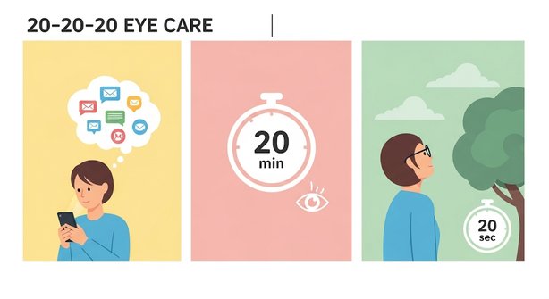 - 오전: 업무 중 20-20-20 법칙을 2회 실천하여 눈의 피로를 미리 예방합니다.