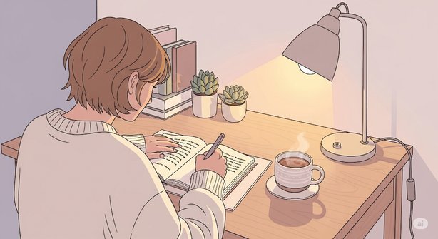 - 나를 위한 글쓰기 공간 만들기: 글쓰기를 위한 작은 의식(Ritual)을 만들어 보세요. 좋아하는 펜과 노트, 따뜻한 차 한 잔, 혹은 잔잔한 음악을 준비하는 것만으로도 충분합니다. 글쓰기를 시작하기 전, 나만의 공간에서 마음을 차분히 정리하는 과정은 글쓰기 자체를 즐거운 시간으로 바꿔줍니다.